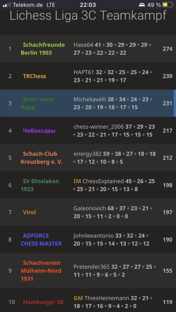 3. Juli 2022Bei der Lichess Quarantäne-Liga 3C gab es heute Abend eine Punktlandung! #niemehrdritteliga #aufbruch2022
